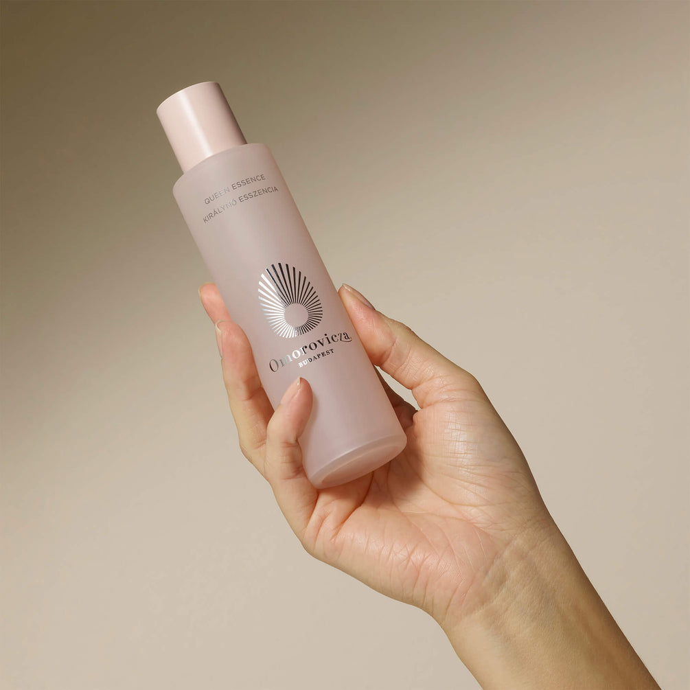 "Keep Queen Essence in the refrigerator and use it with a rose gold roller after a long day in the sun. The cool essence and gentle rolling motion calms and hydrates your skin, making it feel instantly rejuvenated."