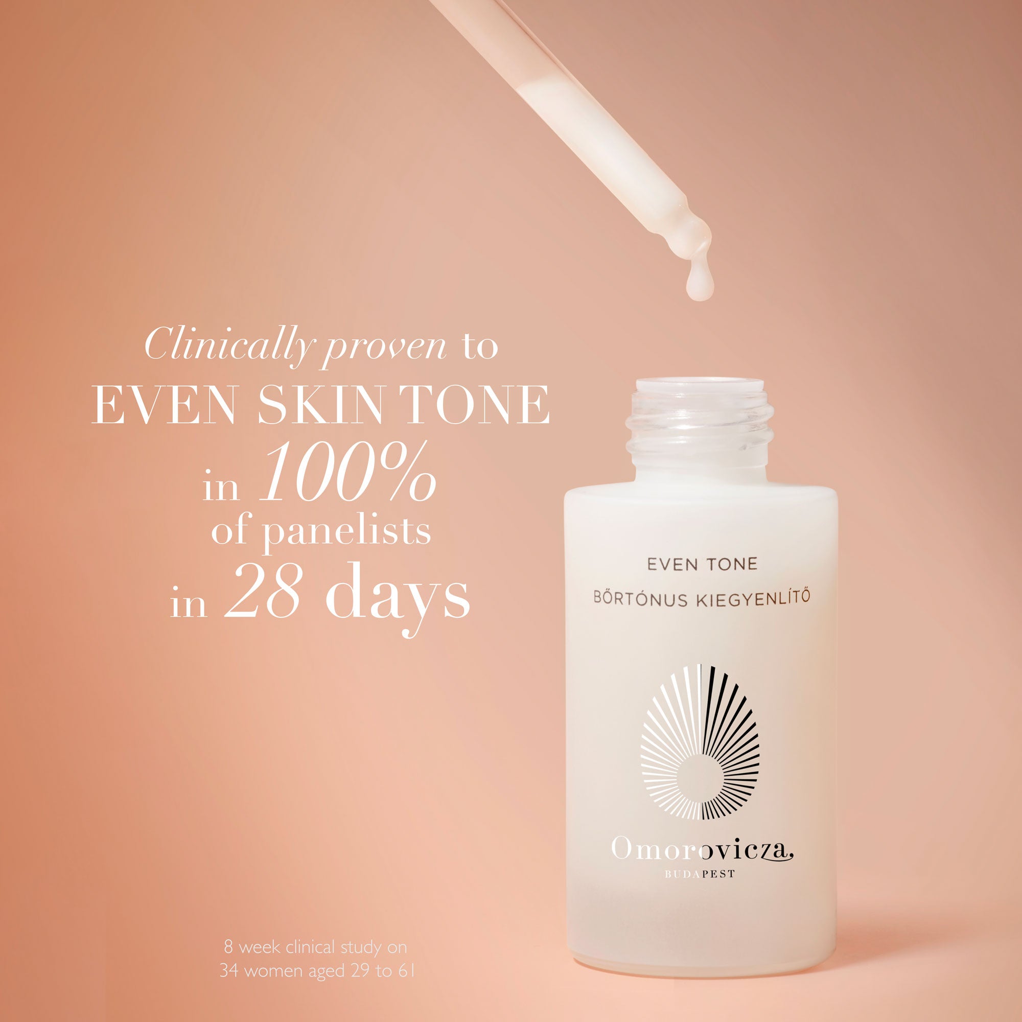 Apply a couple of drops of Even Tone to the face and neck to correct skin from within. Its powerful and corrective actives are suitable for daily morning or evening use and won’t cause irritation.