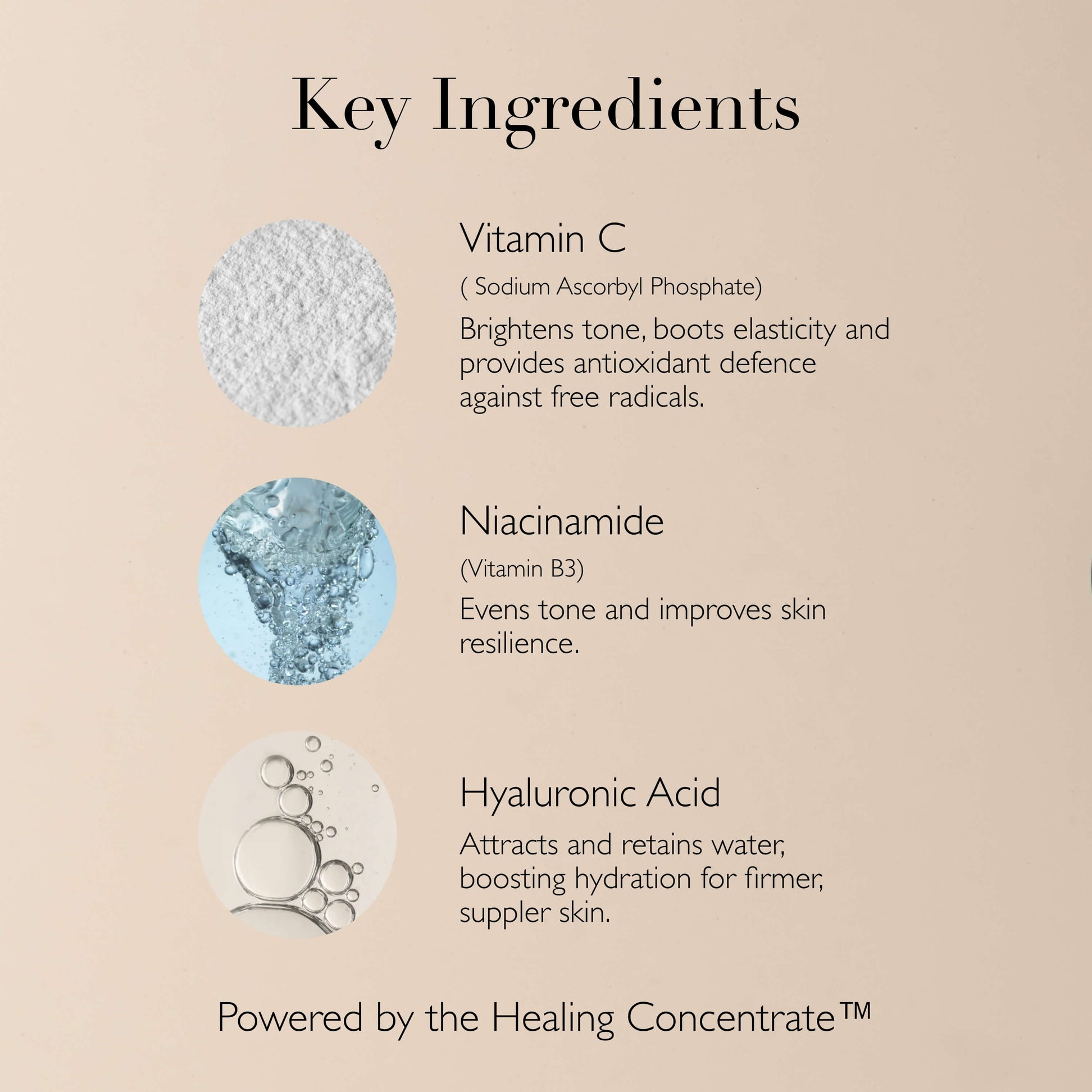 Brighten, protect and rejuvenate with a daily dose of Vitamin C. This lightweight, oil-free serum is designed for morning use, combining highly stable Vitamin C with Niacinamide (Vitamin B3) to deliver instant radiance, even skin tone and enhanced elasticity. Hyaluronic Acid provides antioxidant defence against free radicals and locks in hydration, leaving skin firmer and more supple.